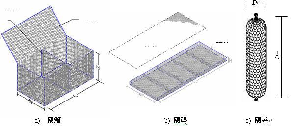 石籠網是金屬線材編織的角形網(六角網)制成的網箱,使用的金屬線徑是根據六角形的大小而不同。如果是金屬鍍層的金屬線六角形,則使用線徑為2.0mm到4.0mm的金屬線,如果是PVC包覆的金屬線編織的六角網,則使用外徑為3.0mm到4.0mm的PVC(金屬)線.外框邊緣的線則使用比六角網線粗一號的線。