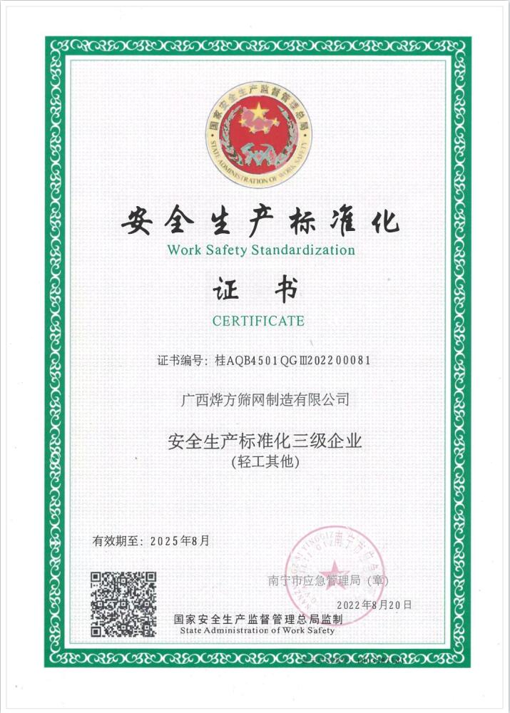 111 廣西燁方安全生產標準化證書!